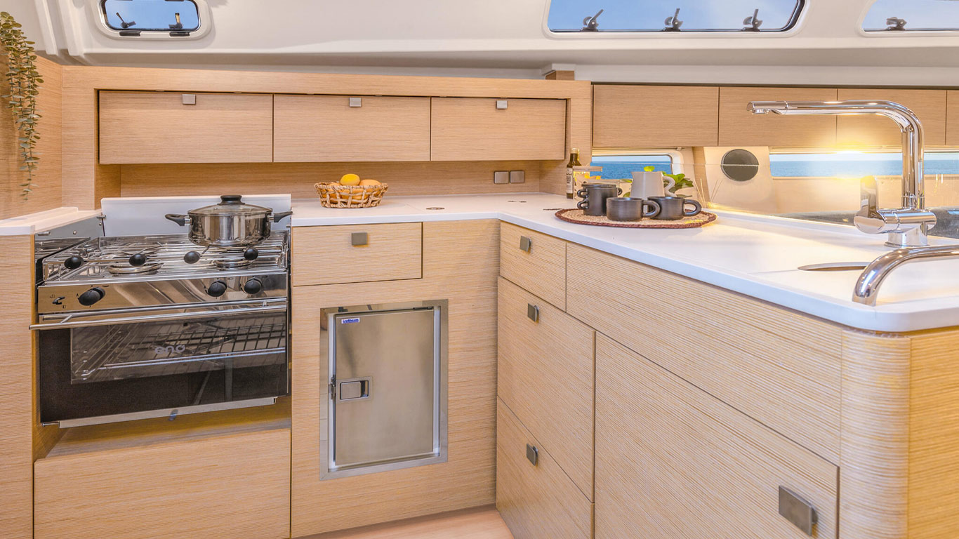 Un salon accueillant et jusqu’à trois cabines spacieuses offrent un véritable sanctuaire pour se détendre. La cuisine avec ses nombreux rangements, son espace de travail spacieux et sa réfrigération de qualité supérieure, est un véritable régal pour les gourmets. Cuisinez avec style sur les vagues !